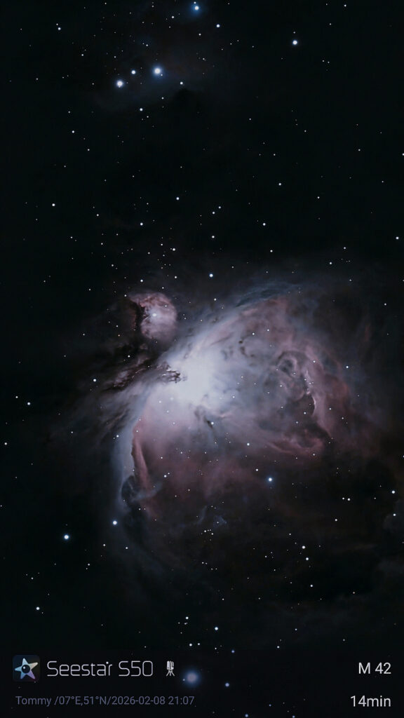 Also habe ich mein Seestar S50 auf Balkonien gestellt und den Orionnebel eingestellt.